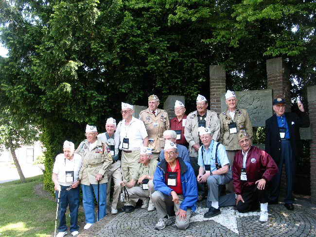 Imbedded in the center of the Memorial | 508ers Pose At The MemorialLeft to Right (Front Row) Walter Barrett, Leonard Sacharoff, Ernie Lamson (Second Row) Guido Pelini, Don Dicks, Edward Wenzel, Darrell Apple, Harry Hudec, Francis Williamson, Bob Speers, Louis Manion, Meint Alberts (local resident who designed the Memorial) (Third Row) George Miles, Armondo Ortiz, Herman Schoolcraft