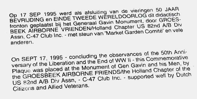 Plaque Commemorationtook place on Sept. 17, 1995, the 50th anniversary of Market Garden. | Historic Trail