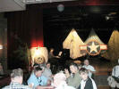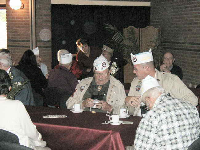Stage Decor was "déjà vu all over again" as parachute silk and glider wheels were on display, all, of course, being WW-II artifacts. Background music on the piano set the mood as guests shared war stories