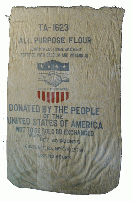 U.S. Aid Flour Bag So well appreciated that this specimen is kept under glass