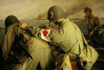 Boat Launch Five men, including a medic, prepare to put their craft into the river