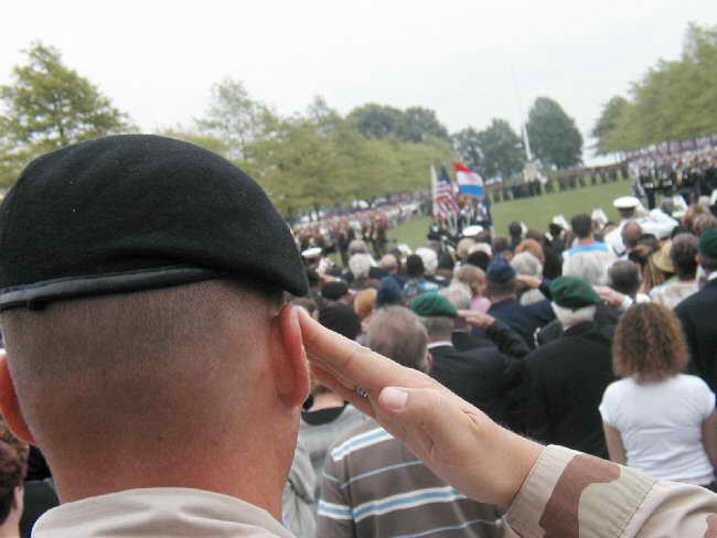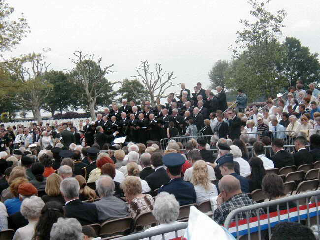 Multi Service Honor Guard consisted of troops from the Netherlands and the United States forces |  Massing of Colors followed the dedication of over three dozen floral wreaths |  ENCI-Choir sang anthems and memorial songs to instrumental music alternately played by bands of both nations |  Active Duty Personnel were in attendance as well