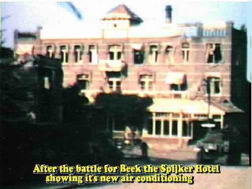 . Hotel Spijker - 1944 Photo from Capt. Nation's 8mm movie archive shows the building suffered in WW-II with windows blown out, etc.