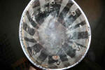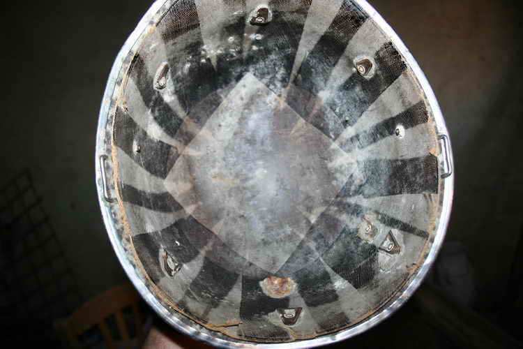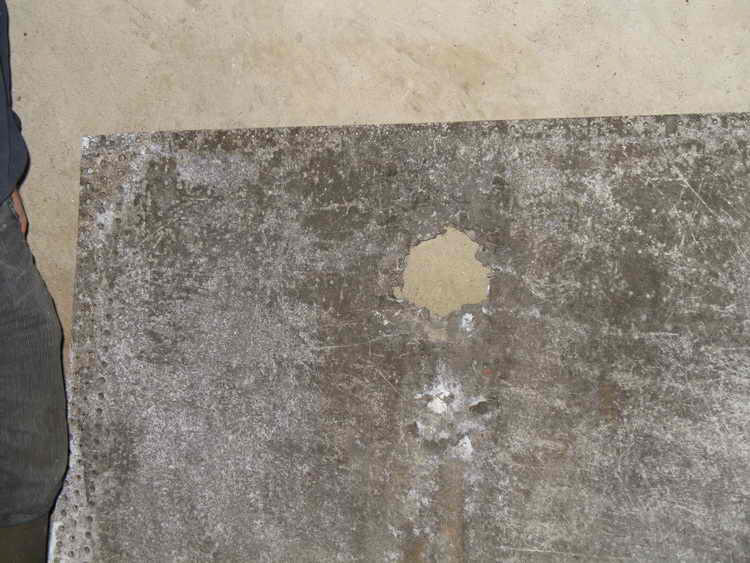 an aircraft panel, perhaps from a wing, has a large diameter hole in