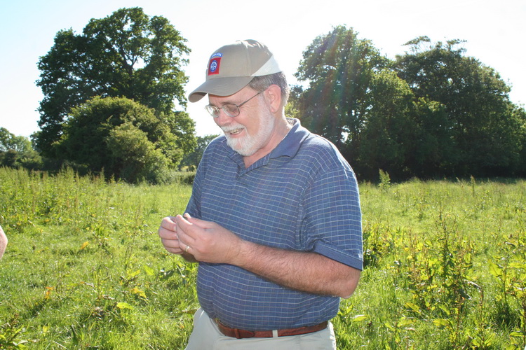 Randy holds the casing that may have been fired by his Dad on D-Day