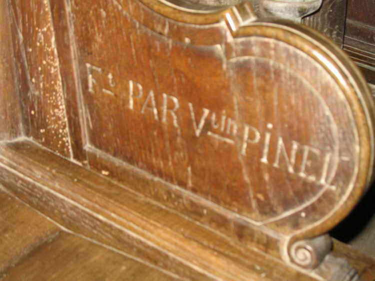 M. Pinel crafted and carved the pews in April 1892. Bobby