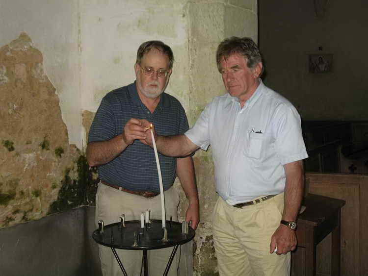 [l-r] Randy Lewellen and Mayor Maurice Gidon light a candle |