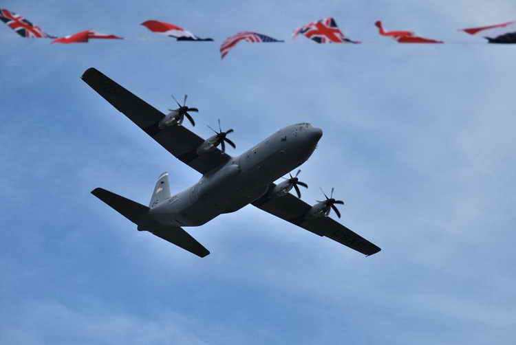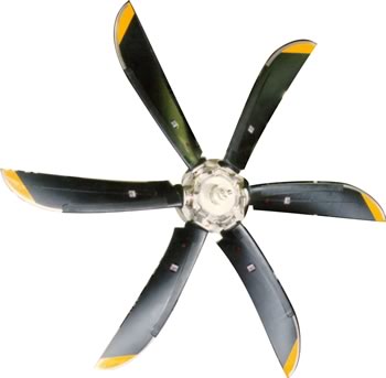 as the aircraft swooped low, its 13 ft 6 in diameter swept-design