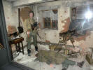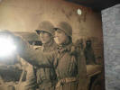 a G.I. stands near the corpse of a German machine gunner |