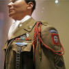 Buck Hutton (MG, ret.) talks to troops. Note the water bags on