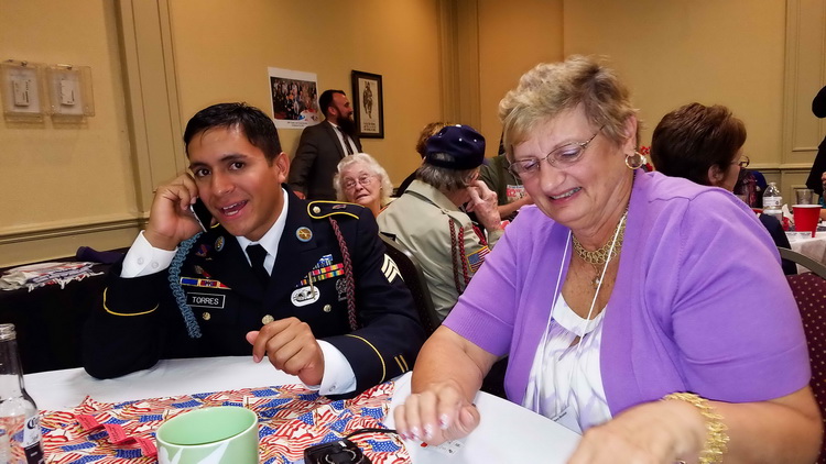 Sgt Christopher Torres photo bombs Taven Collins and Sgt Harrison as they display Panther pins