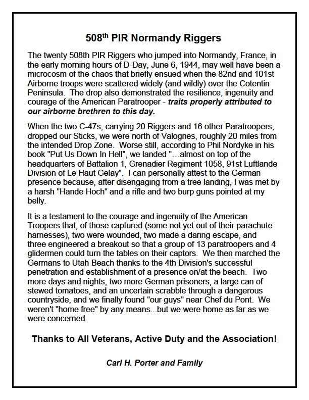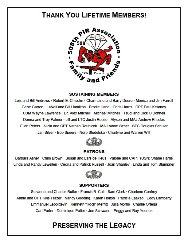 Copyright and all other rights reserved by the Family and Friends of The 508th Parachute Infantry Regiment Association or by those who are otherwise cited, For problems or questions regarding this web site, please contact Jumpmaster.