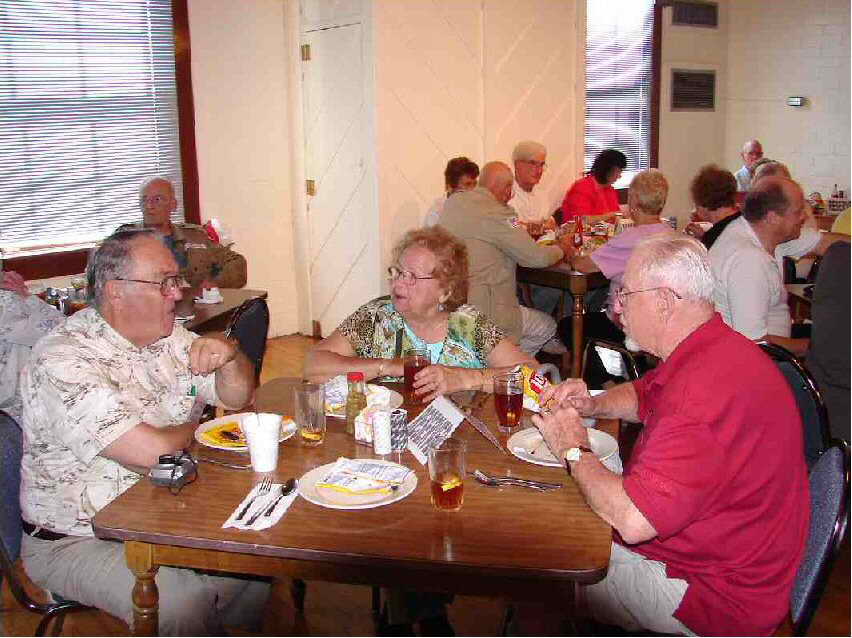 (l-r) Webmaster Dick O'Donnell chats with Florence Mary and Bob Satterly (photo courtesy Graham Lawson)