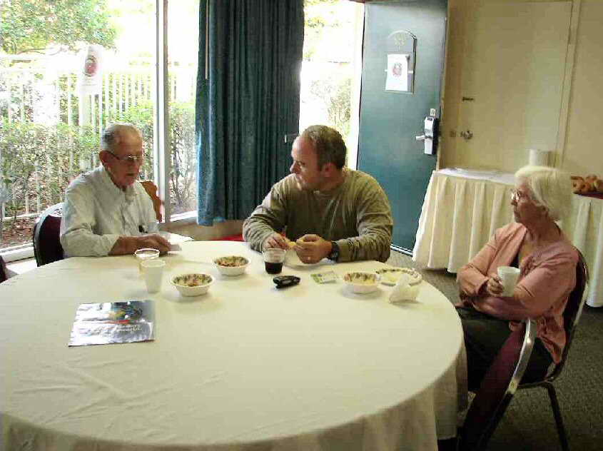 (l-r) Graham Lawson and George Stoeckert (photo courtesy Graham Lawson) |  (l-r) George Stoeckert talks to Peter McCormick (Grady Murray's nephew) while Zig Boroughs listens to someone off camera (photo courtesy Graham Lawson)