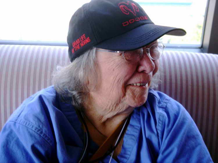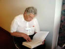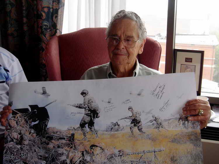 "Johnny" Johnson holds an autographed copy of the painting of Len Funk's counter