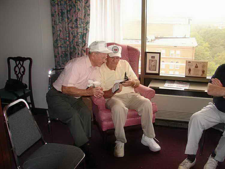 Jim Wynne and Rock Merritt inspect an album