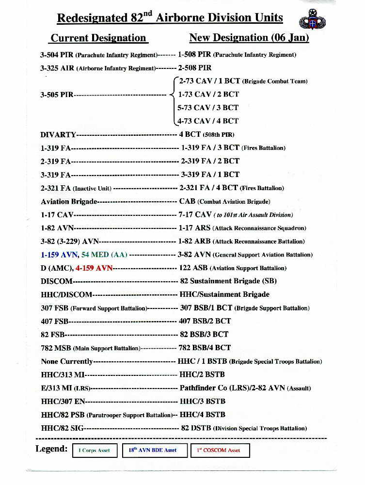 Reorganization Ceremonies were held at Fort Bragg's Simmons Airfield (a helicopter base) on 6 January 2006. |
