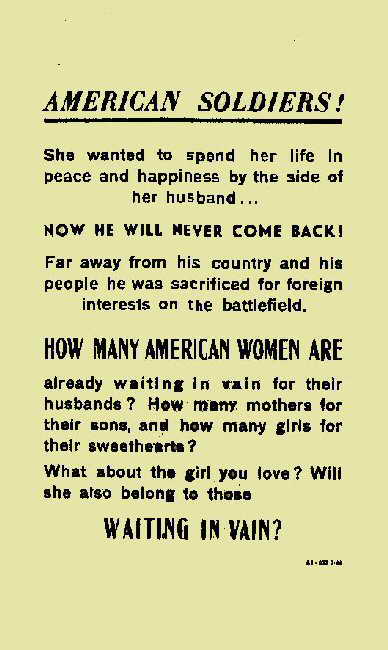Leaflets like this example were dropped by the thousands from German aircraft overlying U.S. Army lines. While most of the men probably laughed at the message, but, for a few it may have added a little extra torment.