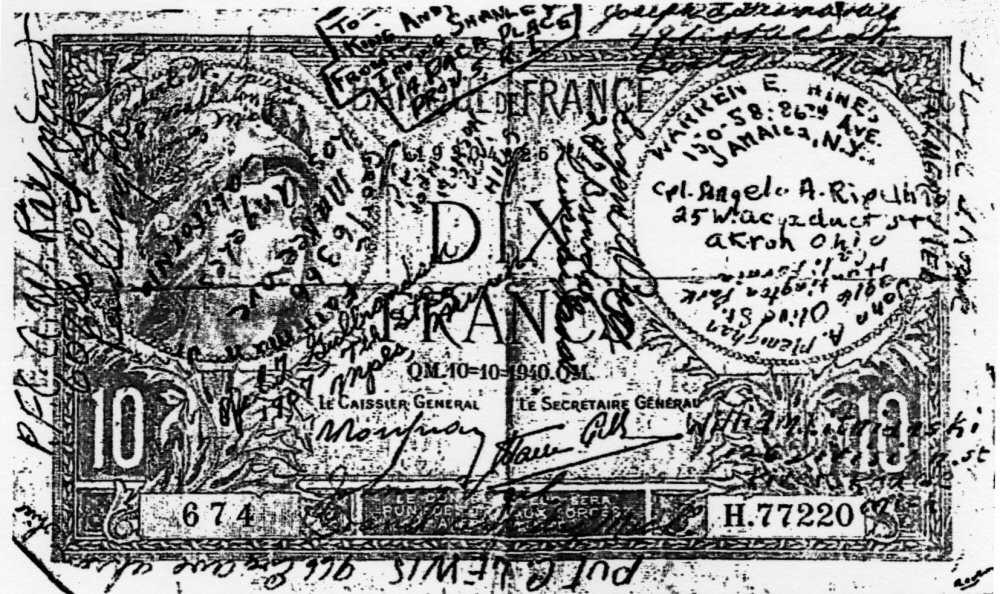 FRENCH 10 FRANC NOTE | Click on either image to view a larger photo. Some signatures are easier to read in a negative view, use the negative links to see this alternative images. |