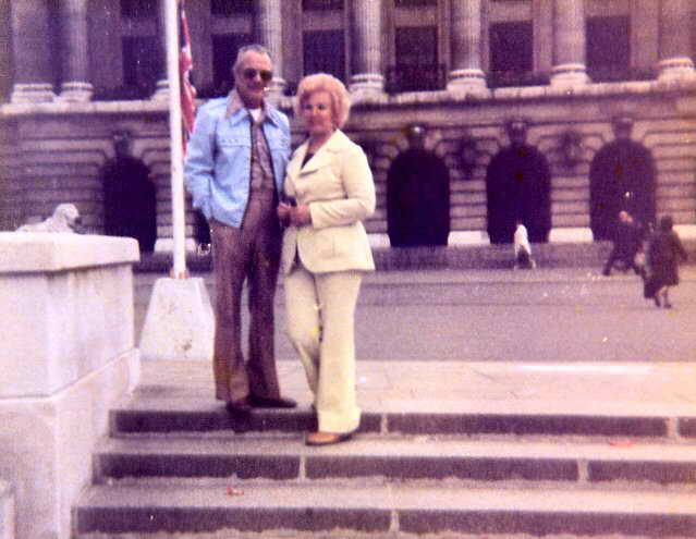 Sal and Betty on the steps of Nottingham's Council Hall during one of his post war visits