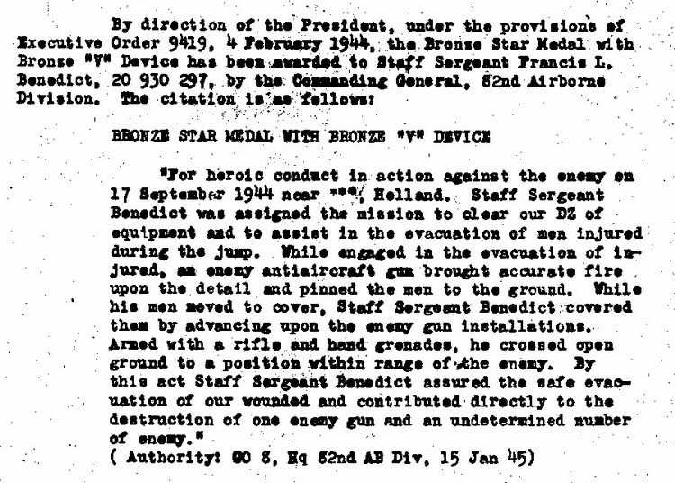 enemy on 17 September 1944 near ***, Holland. Staff Sergeant Benedict