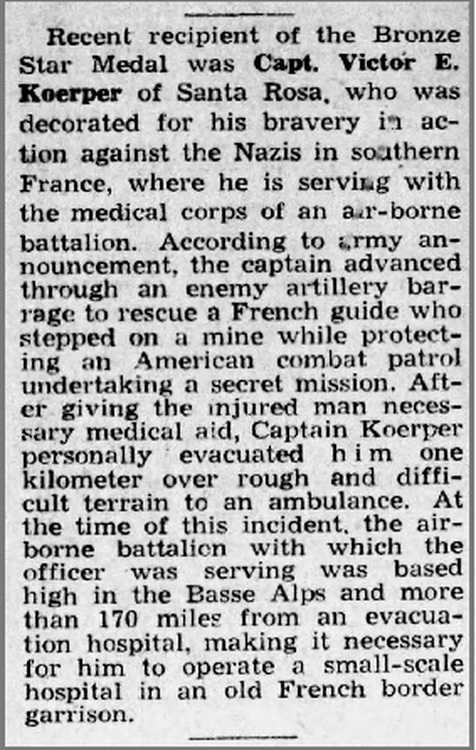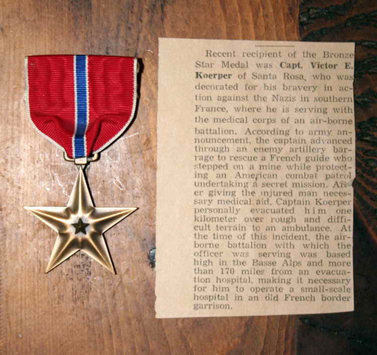 the Bronze Star Medal was Capt. Victor E. Koerper of Santa