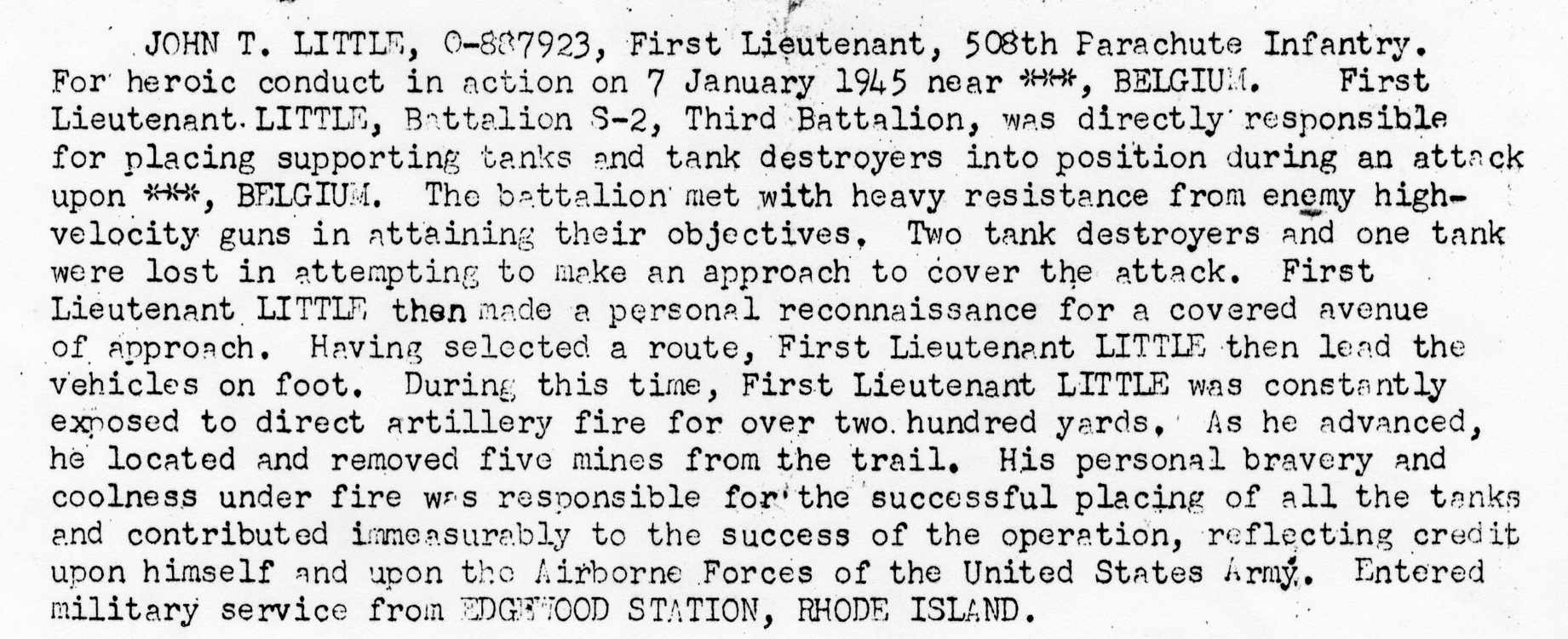 JOHN T. LITTLE, 0-887923, First Lieutenant, 508th