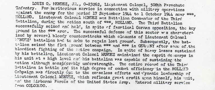 LOUIS G.. MENDEZ, JR., 0-23262, Lieutenant Colonel,, 508th Parachute