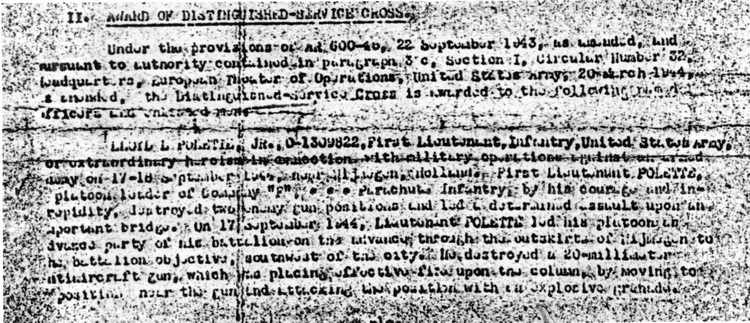 September 1944, near Nijmegen, Holland. First Lieutenant POLETTE,