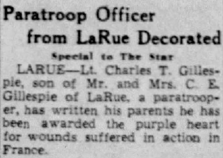 LARUE Lt Charles T. Gillespie, son of Mr. and Mr. C. E. Gillespie