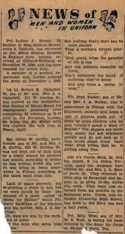 [presumed to be from the Valdosta Times, ca. August 1944] |