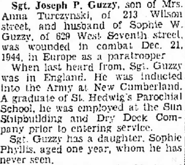 Joseph P. Guzzy, son of Mrs. Anna Turczynski , of 213 Wilson St, and