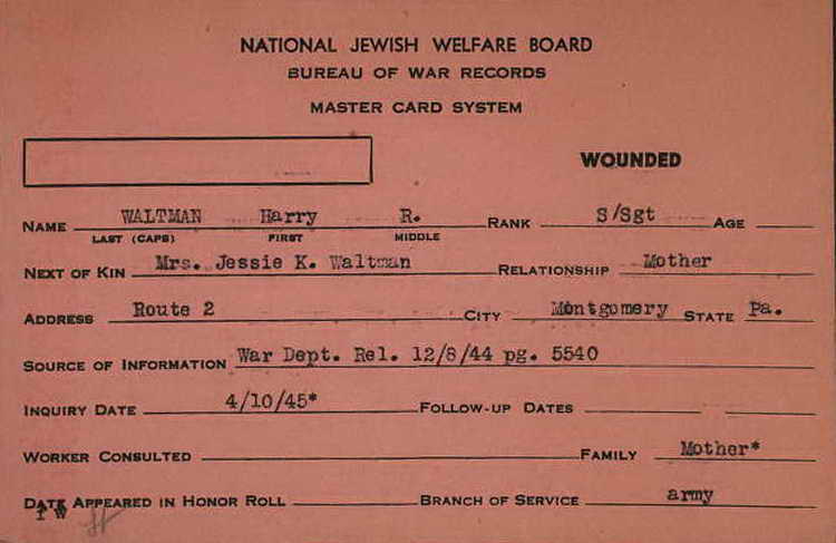 Harry R. Waltman, was wounded although this record does not state when