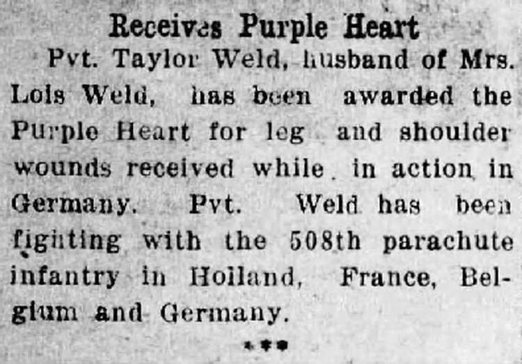 Pvt Taylor Weld, husband of Mrs.. Lois Weld,