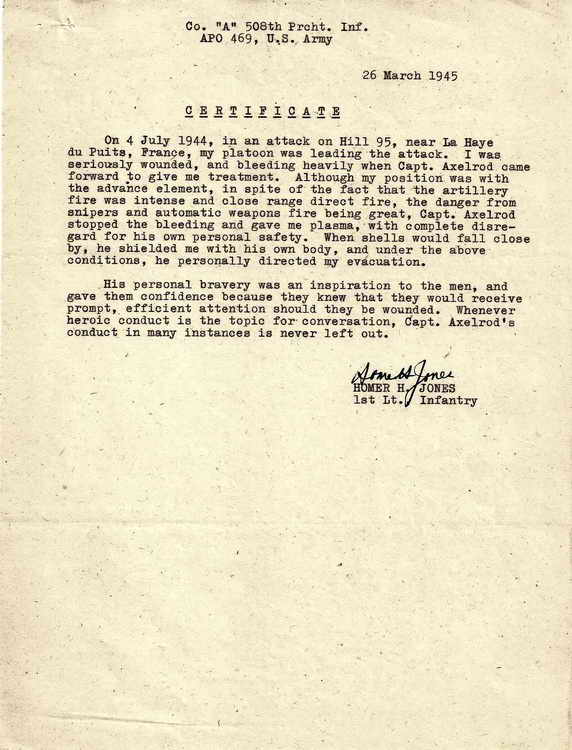 in an attack on Hill 95, near La Haye du Puits, France, my platoon was