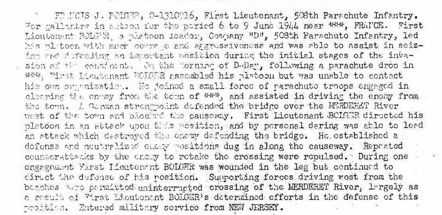 FRANCIS J. BOLGER, O-1310916, First Lieutenant, 508th Parachute Infantry.