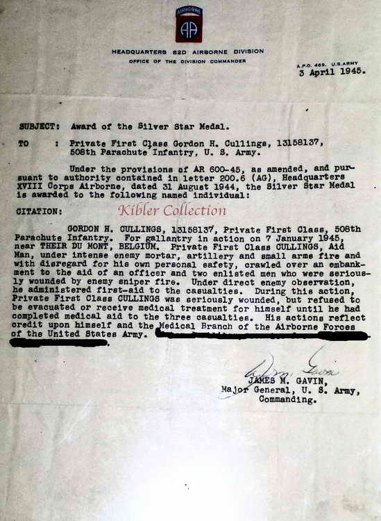 Gordon H. Cullings, 13158137, Private First Class, 508th