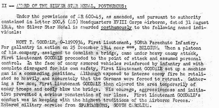 HOYT T. GOODALE, O-1290934, First Lieutenant, 508th Parachute Infantry.