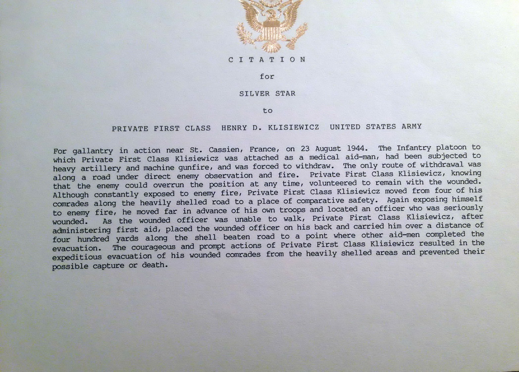PRIVATE FIRST CLASS HENRY D. KLISIEWICZ UNITED STATES ARMY.