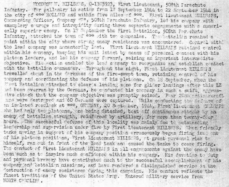 WOODROW W. MILLSAPS, O-1303923, First Lieutenant, 508th Parachute