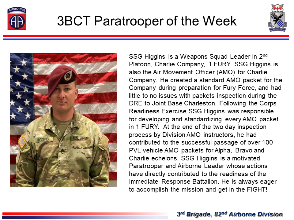 18 March 2021 SSGT Higgins Weapons Squad Leader in 2nd Platoon, Charlie Company