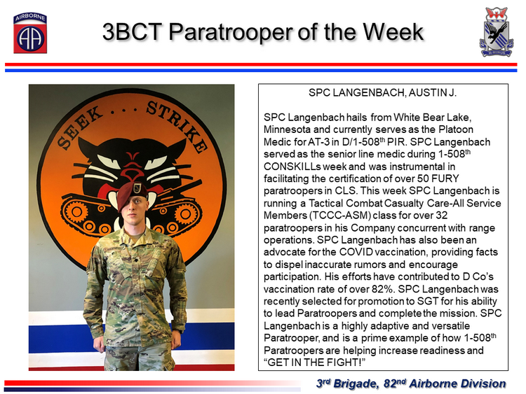 18 March 2021 SPC Langenbach Platoon Medic in Company D