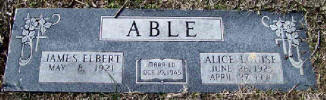 Grave marker for James E. Able and his wife Alice who