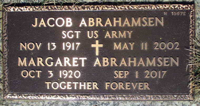 Jacob Abrahamsen passed away on 11 May 2002 and is