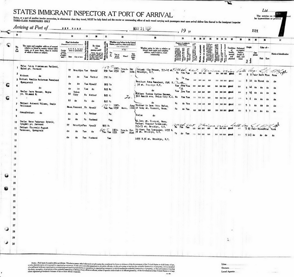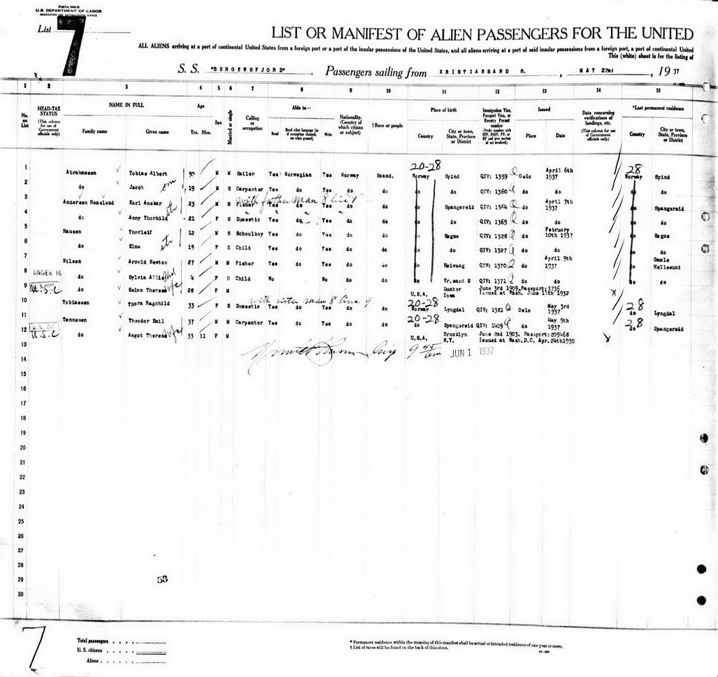 a native of Norway, arrived in New York City on 1 June 1937 with his