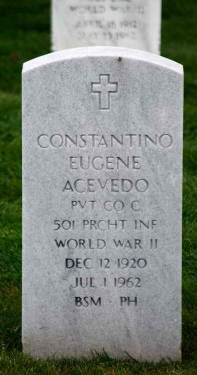 Grave marker for Constantino E. Acevedo in Plot