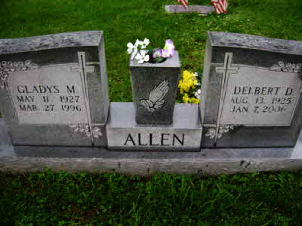 Grave markers for Delbert D. Allen in the Little Kanawha
