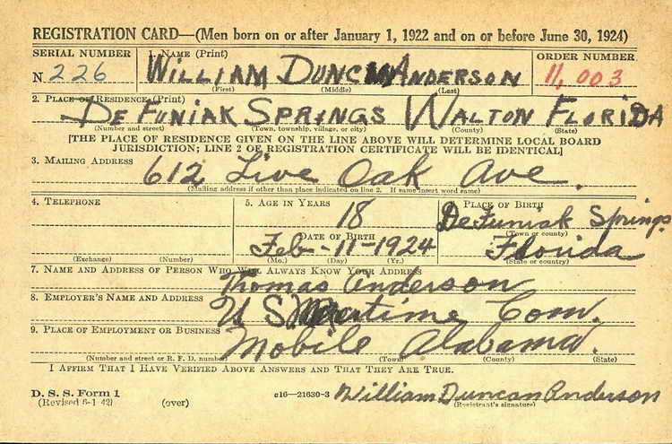 William enlisted at Camp Blanding, FL on 15 October 1942 and was