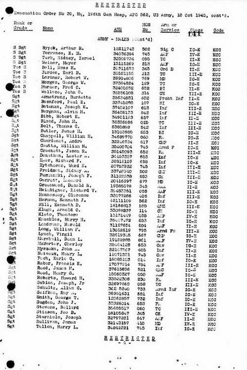 Under Hq 196th General Hospital Evacuation Order No .39