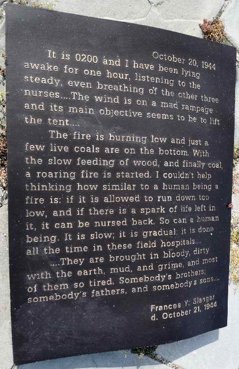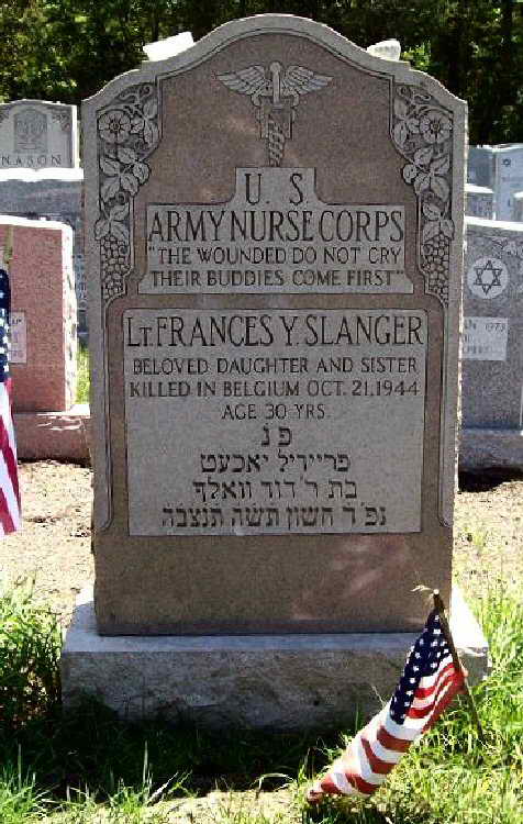 On October 21, 1944, Frances Y. Slanger, R.N. died in Elsenborn, Belgium, a victim of a German artillery attack. She was the first American nurse to die in Europe after the June 1944 D-Day landings in Normandy. She was 31 years old.